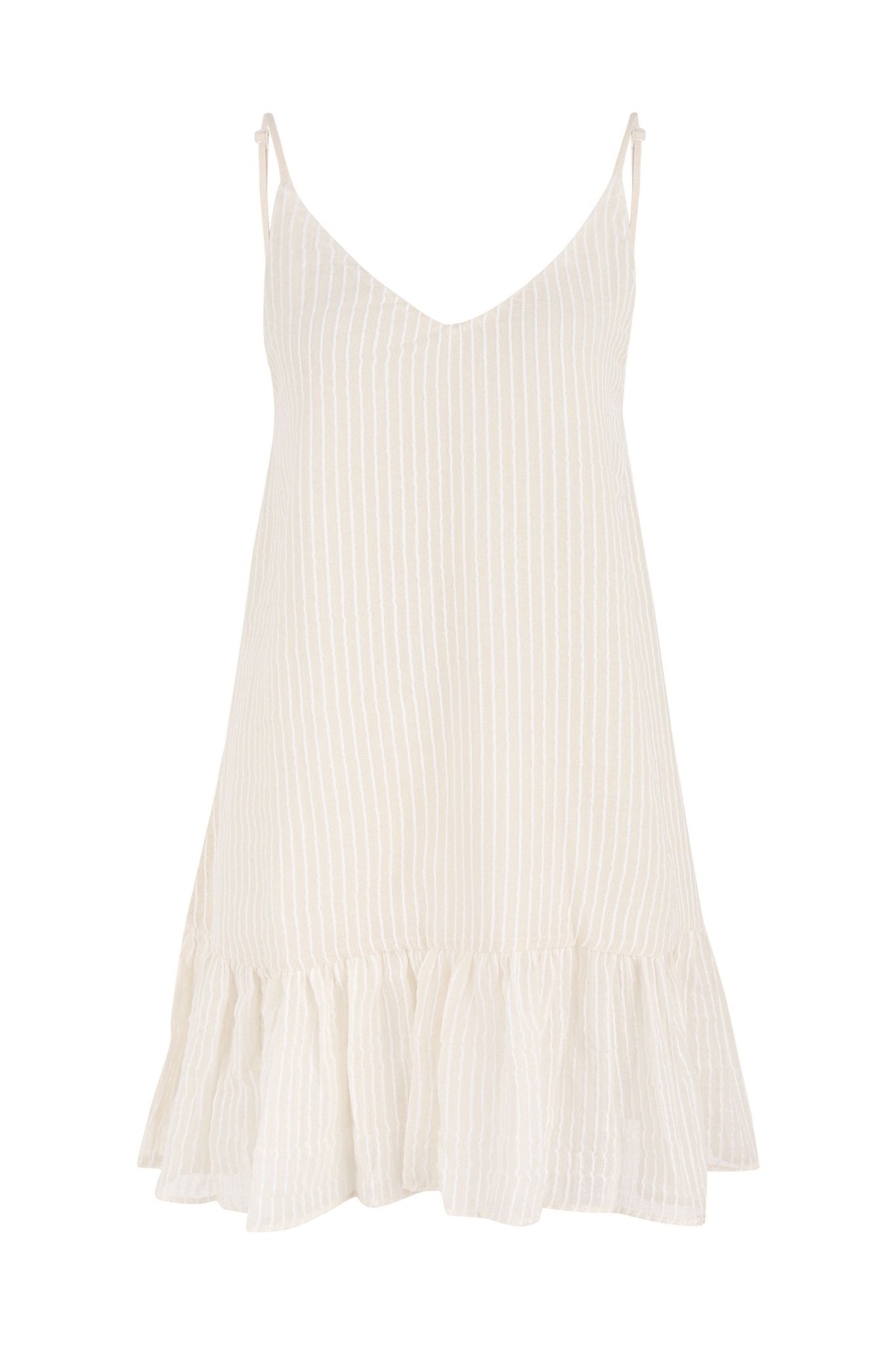 Liv Mini Ruffle Dress White Stripes has an effortless silhouette designed for wonderers and intuitive women. This relaxed dress features an open back with adjustable straps, leaving you free to explore and enjoy the lazy days on beach with an open heart. It has delicate details like ruffles trim that completes your feminine silhouette.
