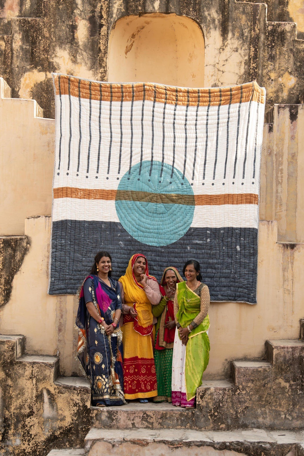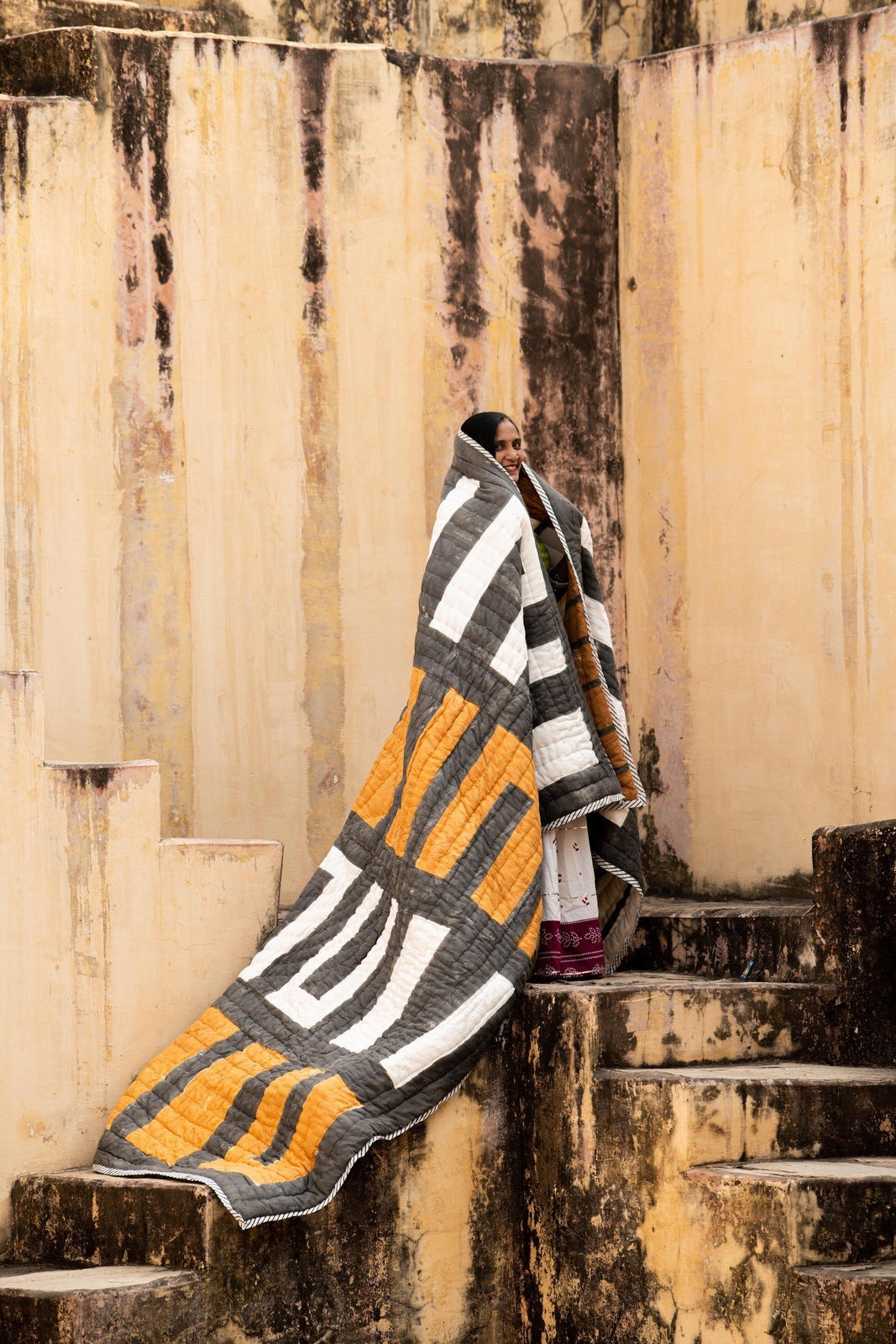 Each quilt is handmade, requiring attention from 4 different artisans, including wood carvers, block printers, quiltmakers, and dye specialists.