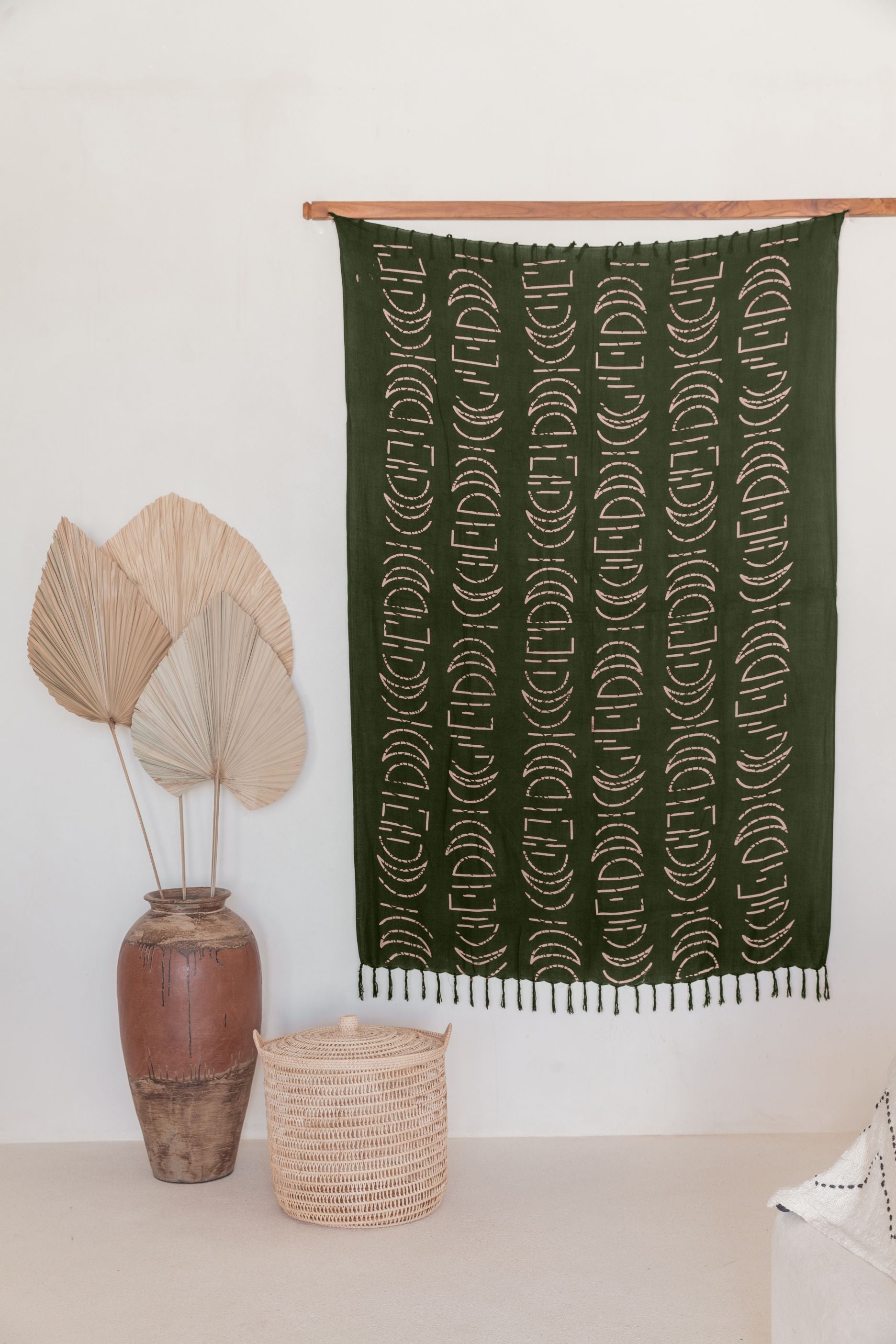 This textile can be worn in endless ways, used to dress up an outfit or your space. Can be worn as a wrap in the summer, a scarf in the fall or hung as a tapestry on your wall- it’s a beautiful statement, handmade with love in Bali, Indonesia that tells a story of generations of craft and culture.