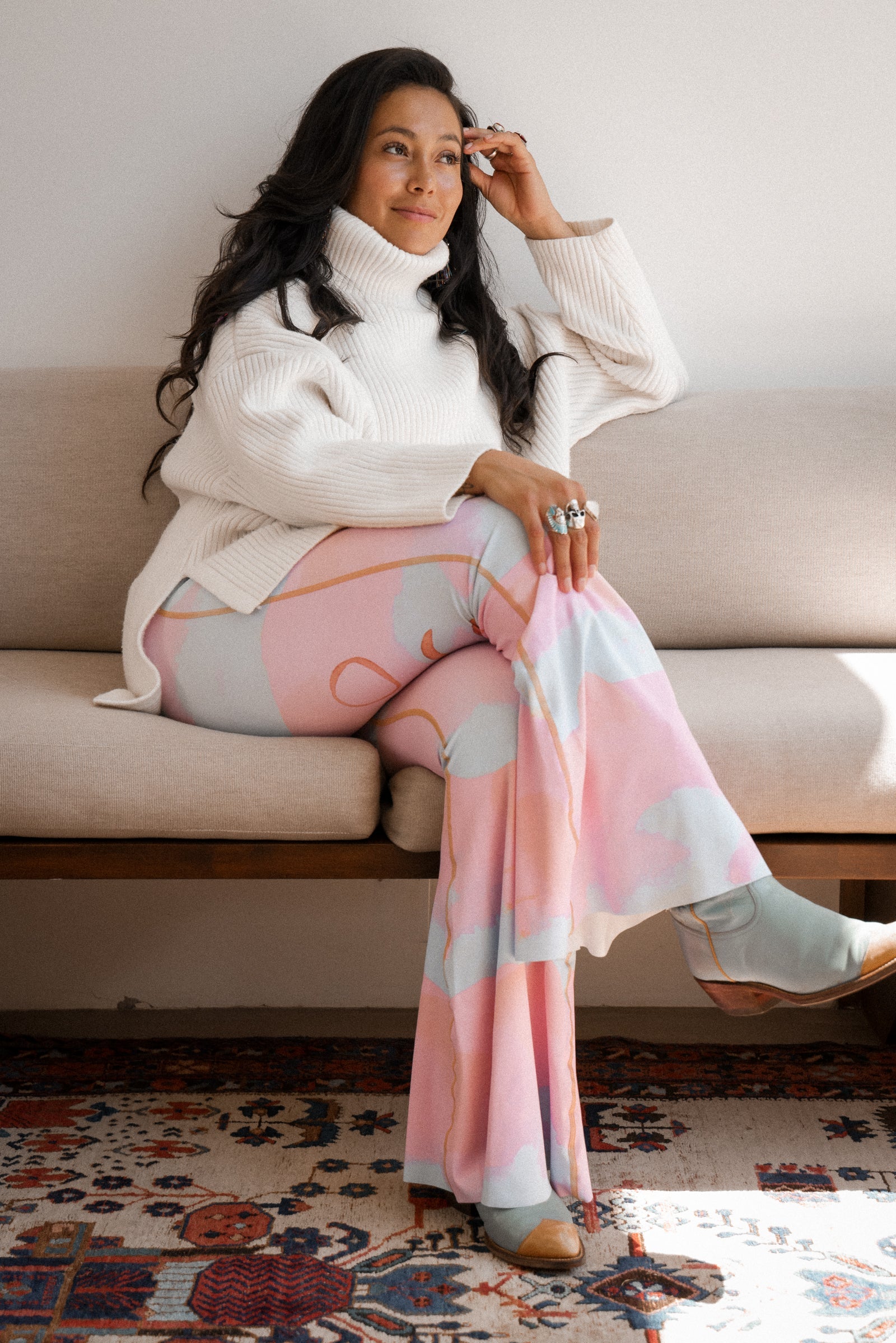 ‘Crop Bell Bottoms’ are 3-4” inches shorter than our Regular Teeki ‘Bell Bottoms’. The cropped fit has become a trendy new favorite that lends to a more wearable length, perfect for yoga, lounging barefoot and wearing with flat shoes. The cut of the large flare starts just above the knee for a fun flowy feel.  Proudly crafted in the USA with high quality threads, minimal seams, ensuring a sleek and comfortable look.