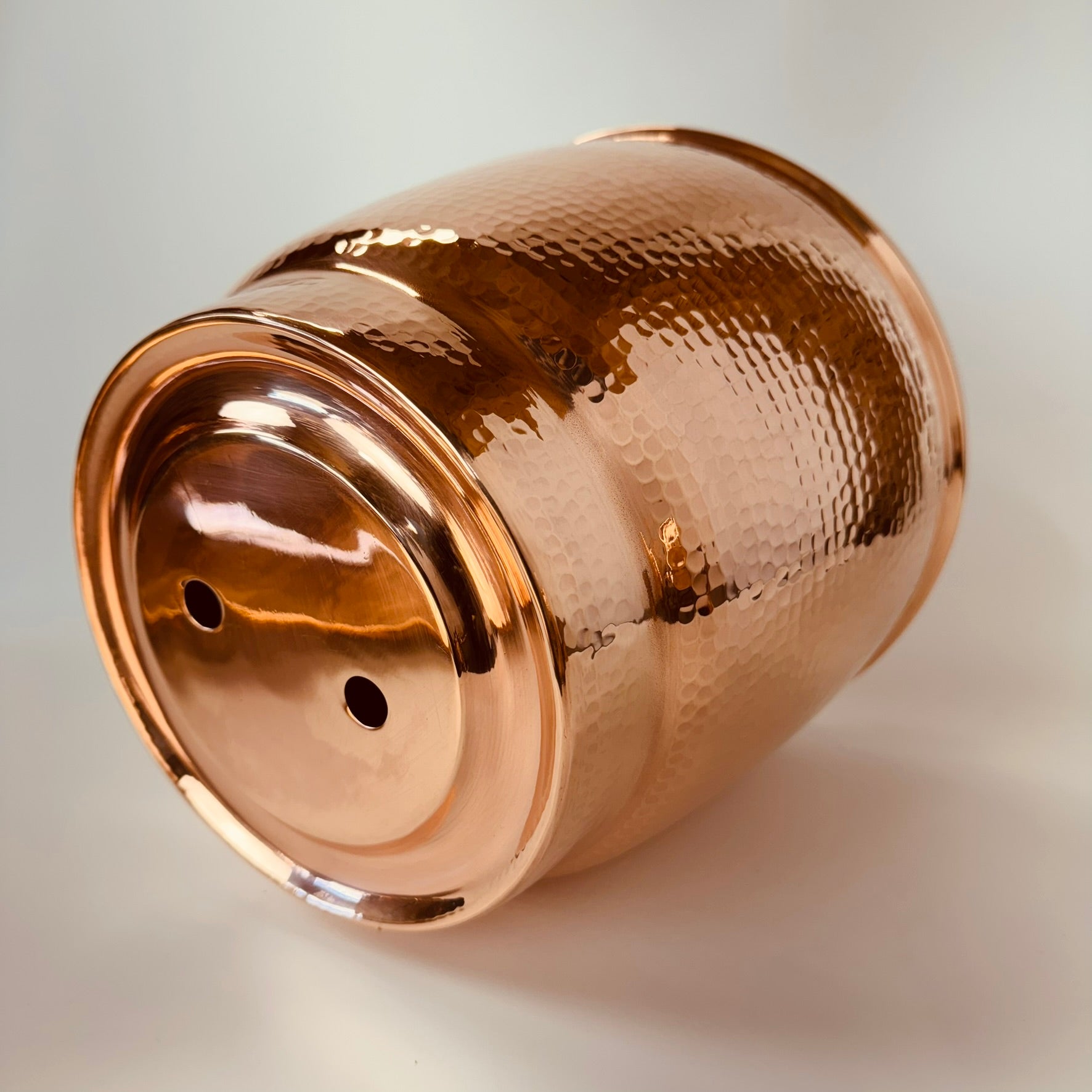 1. Health Benefits: The use of copper in water storage is an ancient practice with known health benefits. Copper is believed to have antimicrobial properties and may help in the reduction of harmful pathogens. Drinking water from a copper container, as per Ayurvedic traditions, is thought to balance the energies of the body. The filtration system further removes contaminants like bacteria, chlorine, fluorides, and lead, ensuring that the water you drink is not only clean but also beneficial for your health.