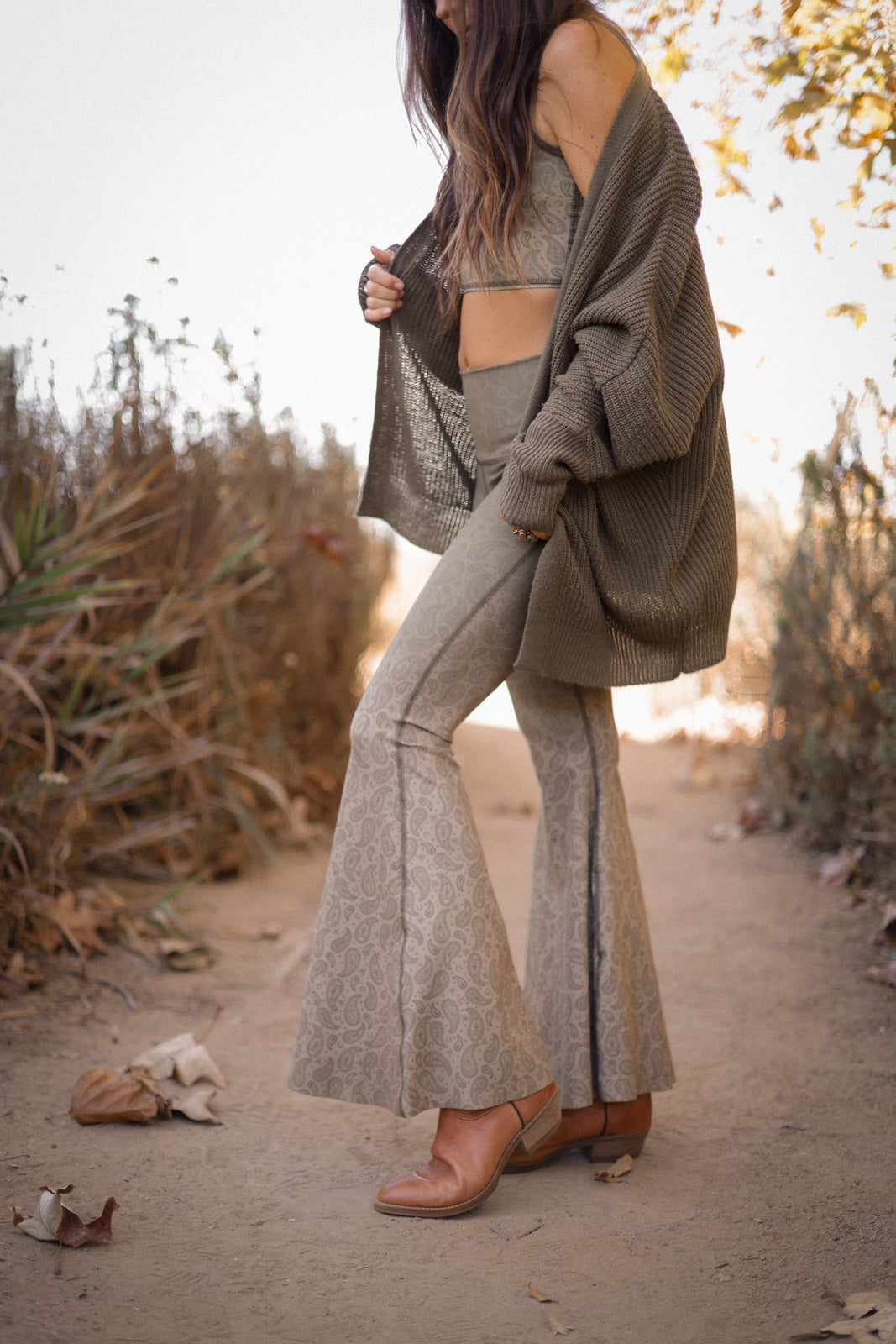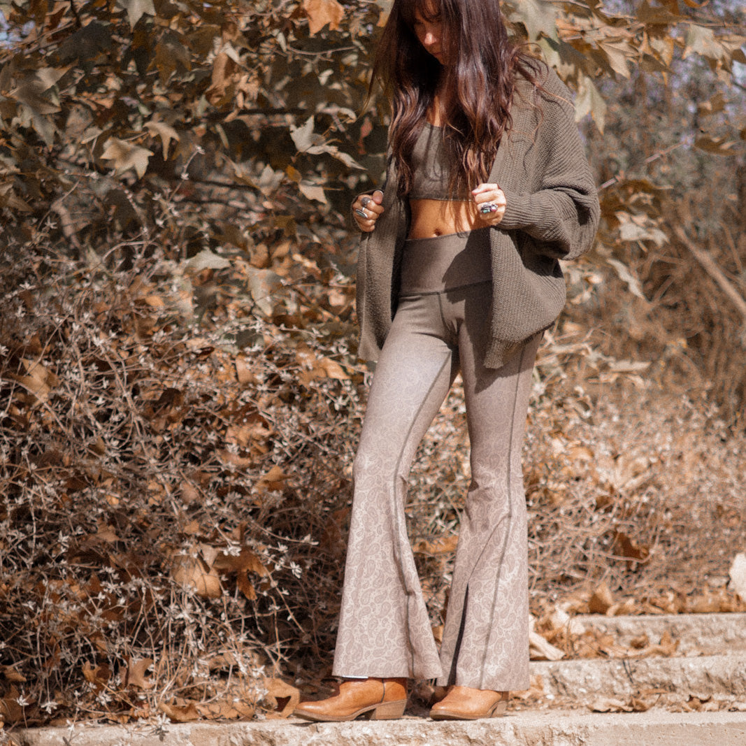The best-selling Crop Bell Bottoms offer the perfect blend of fashion and comfort. These versatile flare pants are a must-have, offering good vibes year-round to your style. Made from a soft, buttery brushed jersey (different from the Hot Pants).  They are a fun choice for all body types. Dress them up or down. Comfortable and cute for work, meditation, hiking, yoga, travel and more. These bell bottoms elevate your everyday fashion with a playful flare.