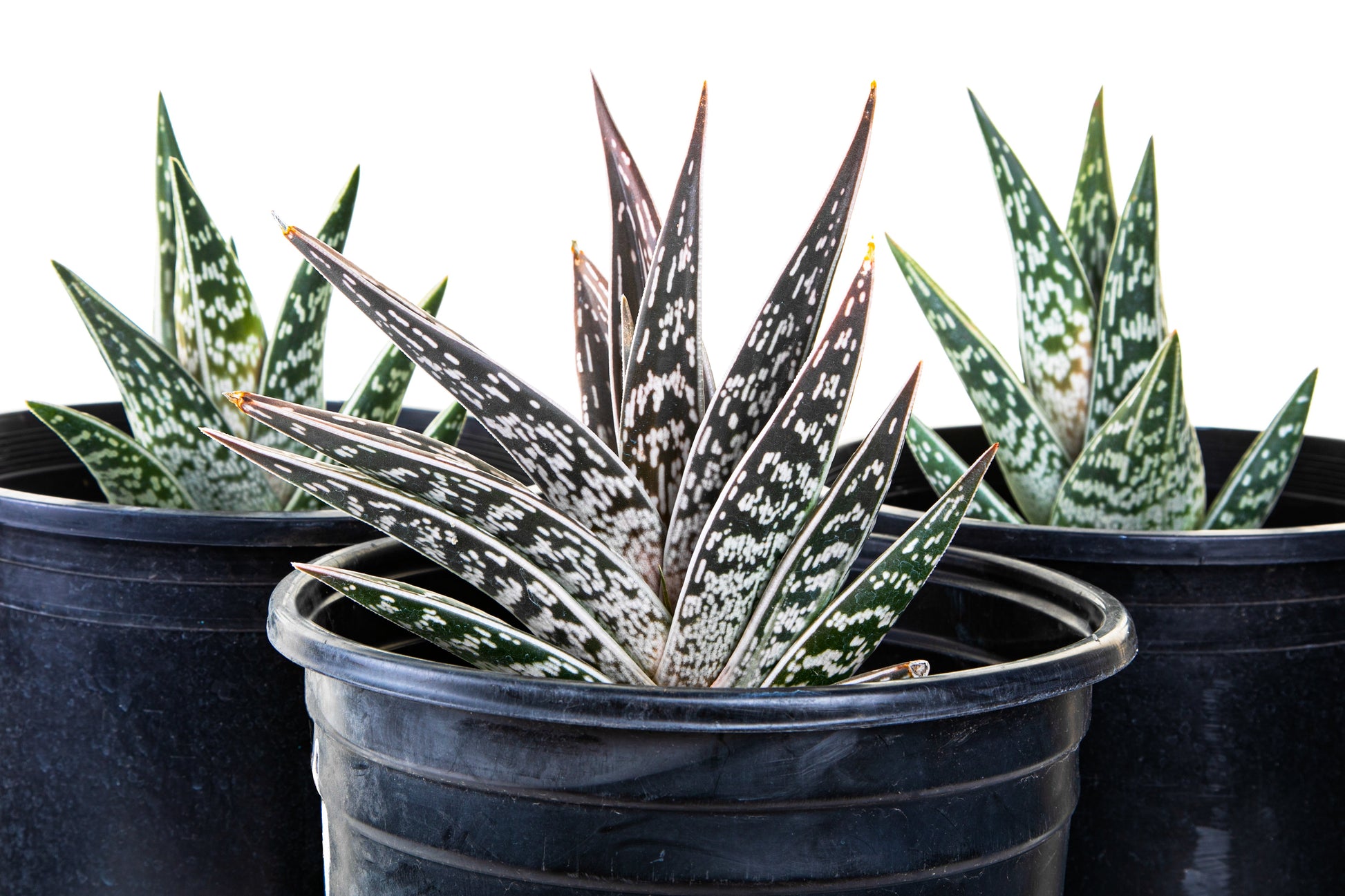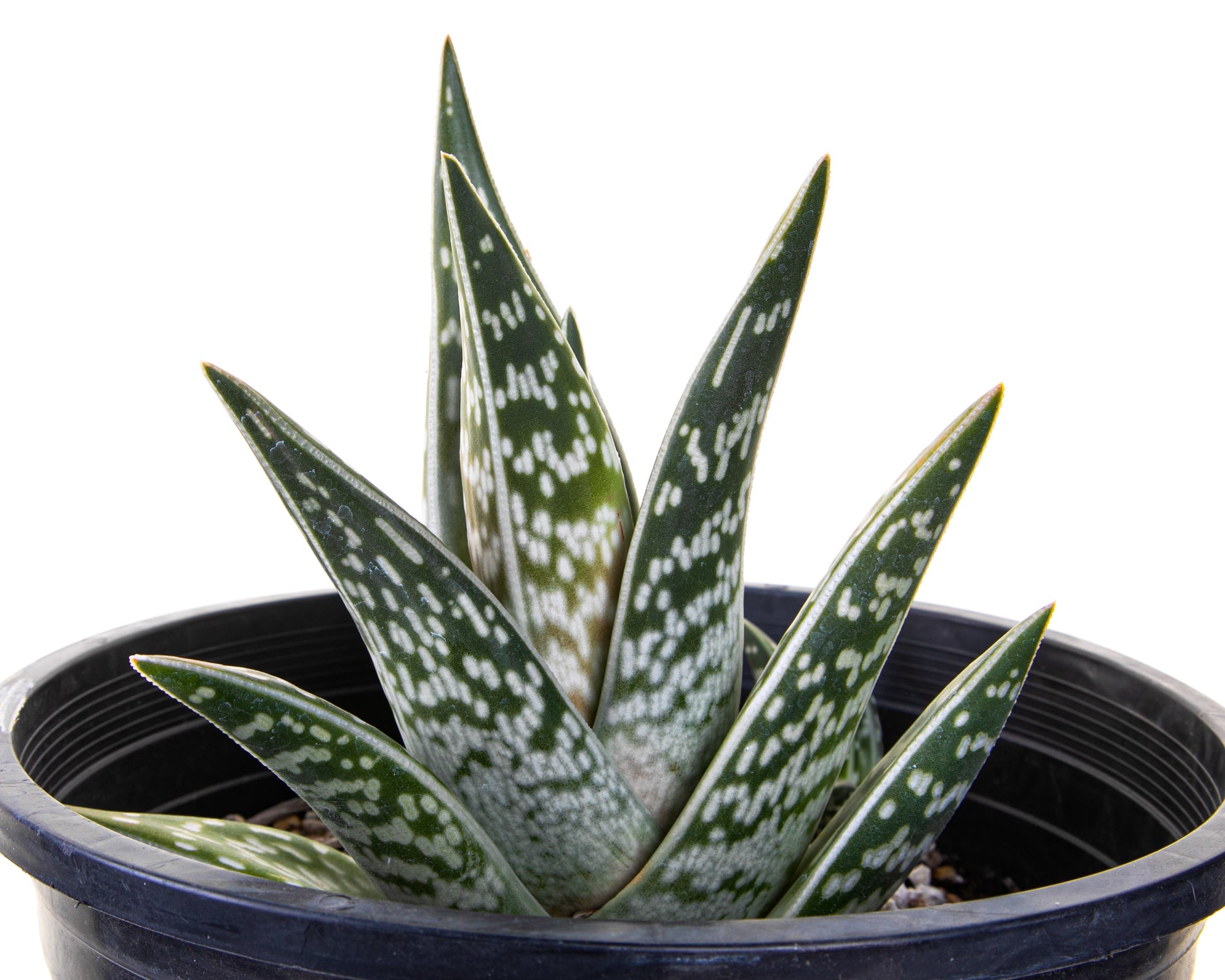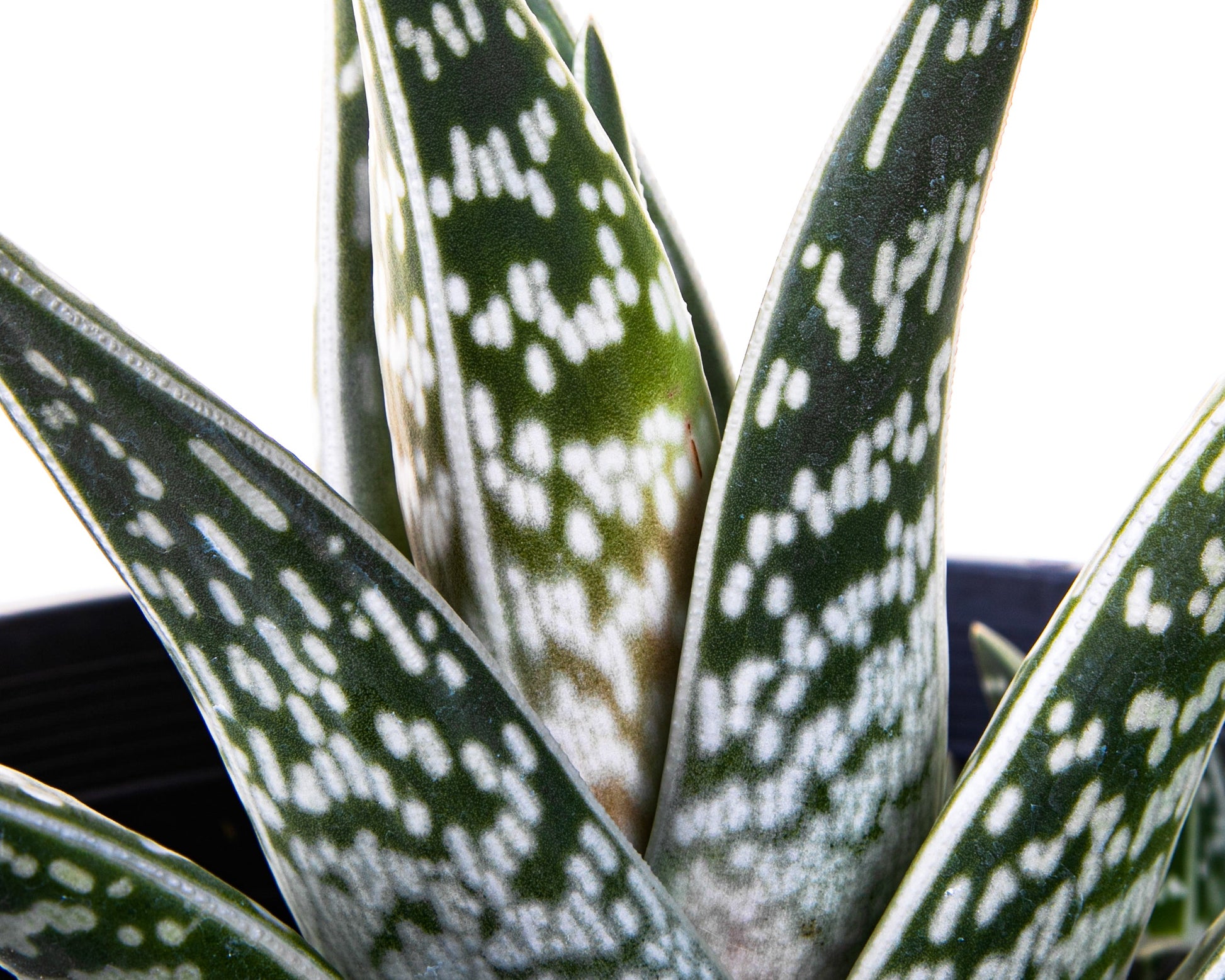 Aloe variegata. Green and brown mixed with white variegated leaves. Small aloe perfect for pots or in the ground in groups.  Mature size of 18"x18"