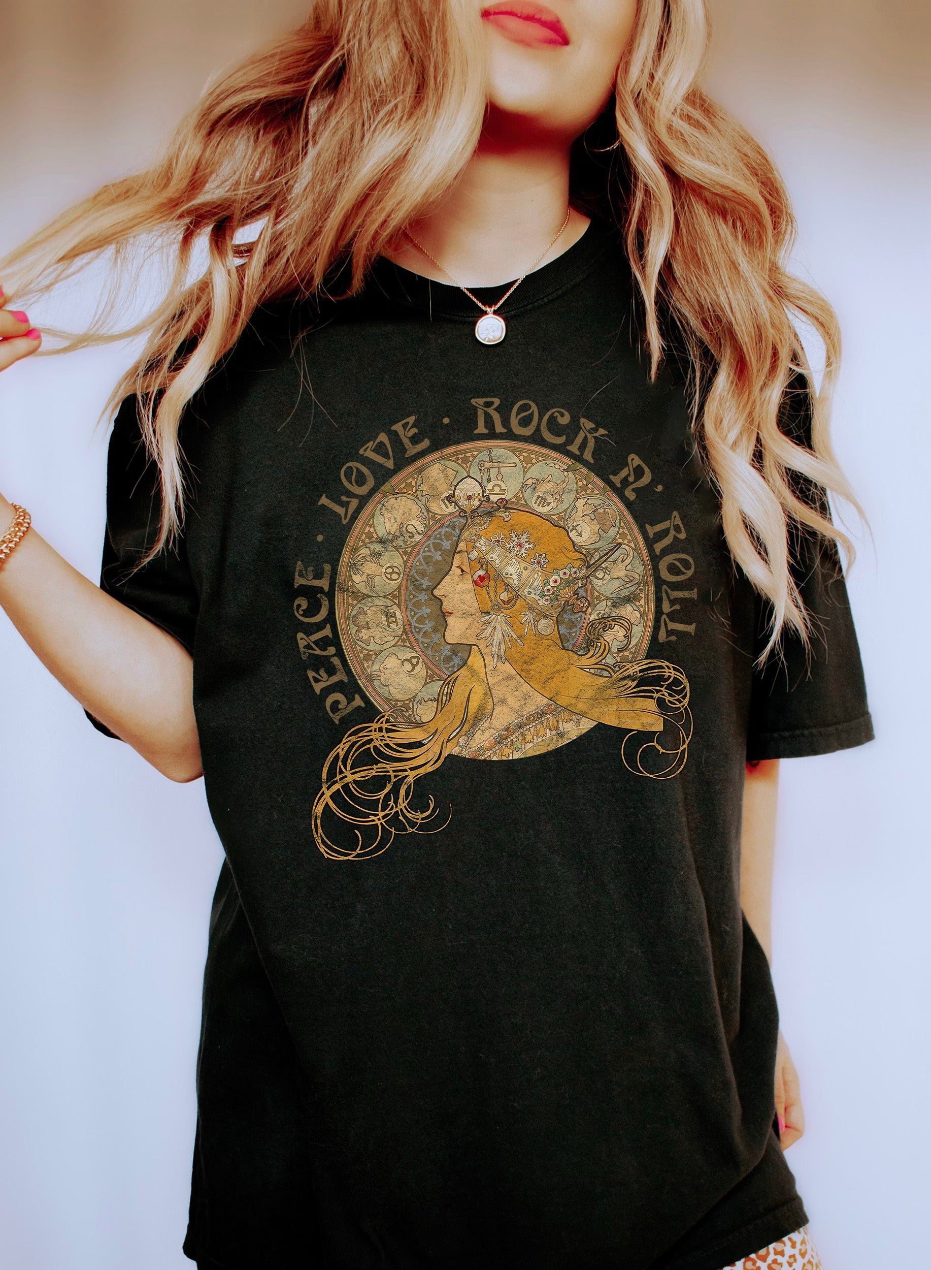 Step out in style with the Peace Love Rock N' Roll Comfort Colors T-shirt and let your love for music shine. With its incredible comfort and trendy design, this tee is a must-have for music enthusiasts and casual wear lovers alike. Don’t miss out—order yours today!