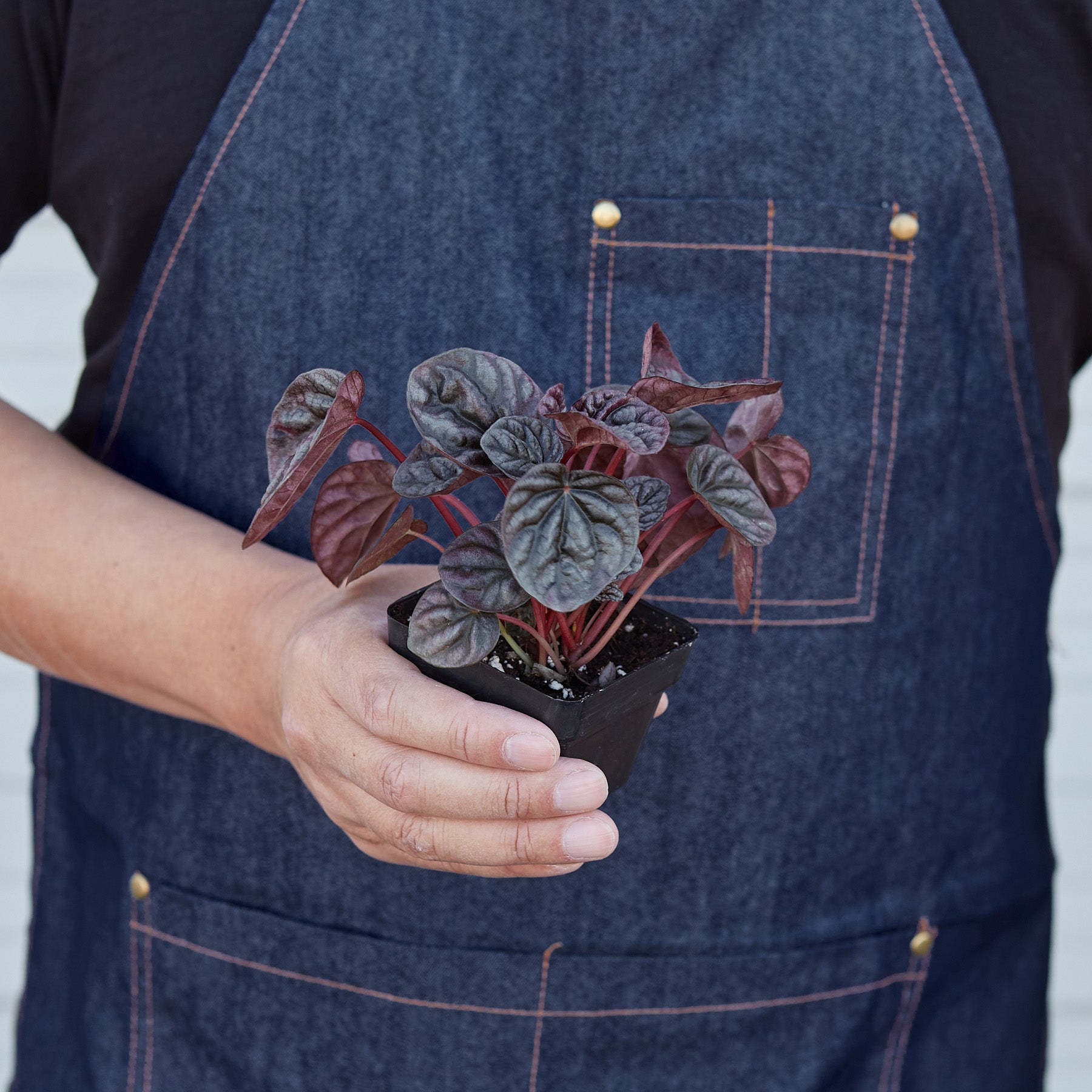 • Description: The Peperomia is a perennial epiphyte native to the tropical regions of Central and South America. It's short and sturdy stems wield thick, circular leaves which are a deep burgundy color and retains most of its water. The Peperomia is very easy to care for and requires similar care habits to most succulents making it a great addition to any desk or shelf.