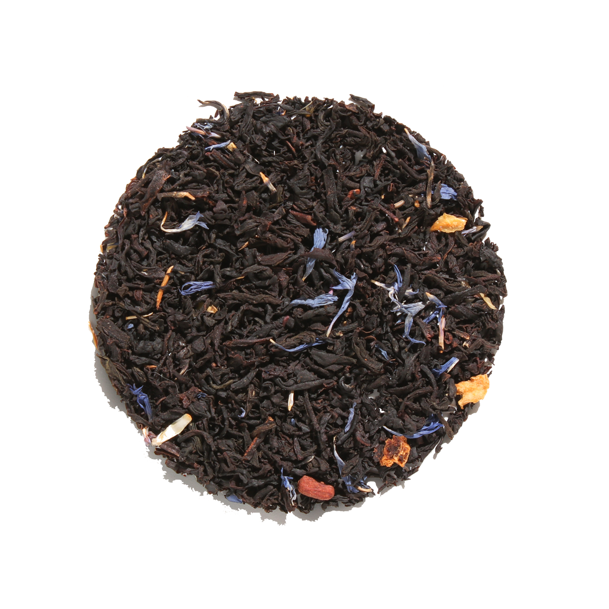 Ingredients: Black Tea, Orange Peels, Blue Cornflowers, Cinnamon Chips, Bergamot Oil, Pecan Essence.