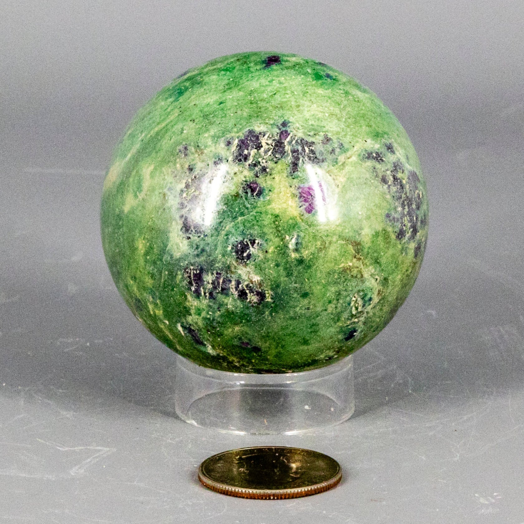 Discover the Ruby Fuchsite Sphere, a remarkable crystal combining the vibrant energy of ruby with the nurturing qualities of fuchsite. This sphere is prized for promoting emotional balance and enhancing vitality, making it an excellent tool for meditation and healing practices. Its polished, spherical shape allows energy to radiate evenly, fostering clarity and grounding. Ideal for collectors and crystal enthusiasts seeking a sophisticated addition with both aesthetic appeal and energetic benefits.
