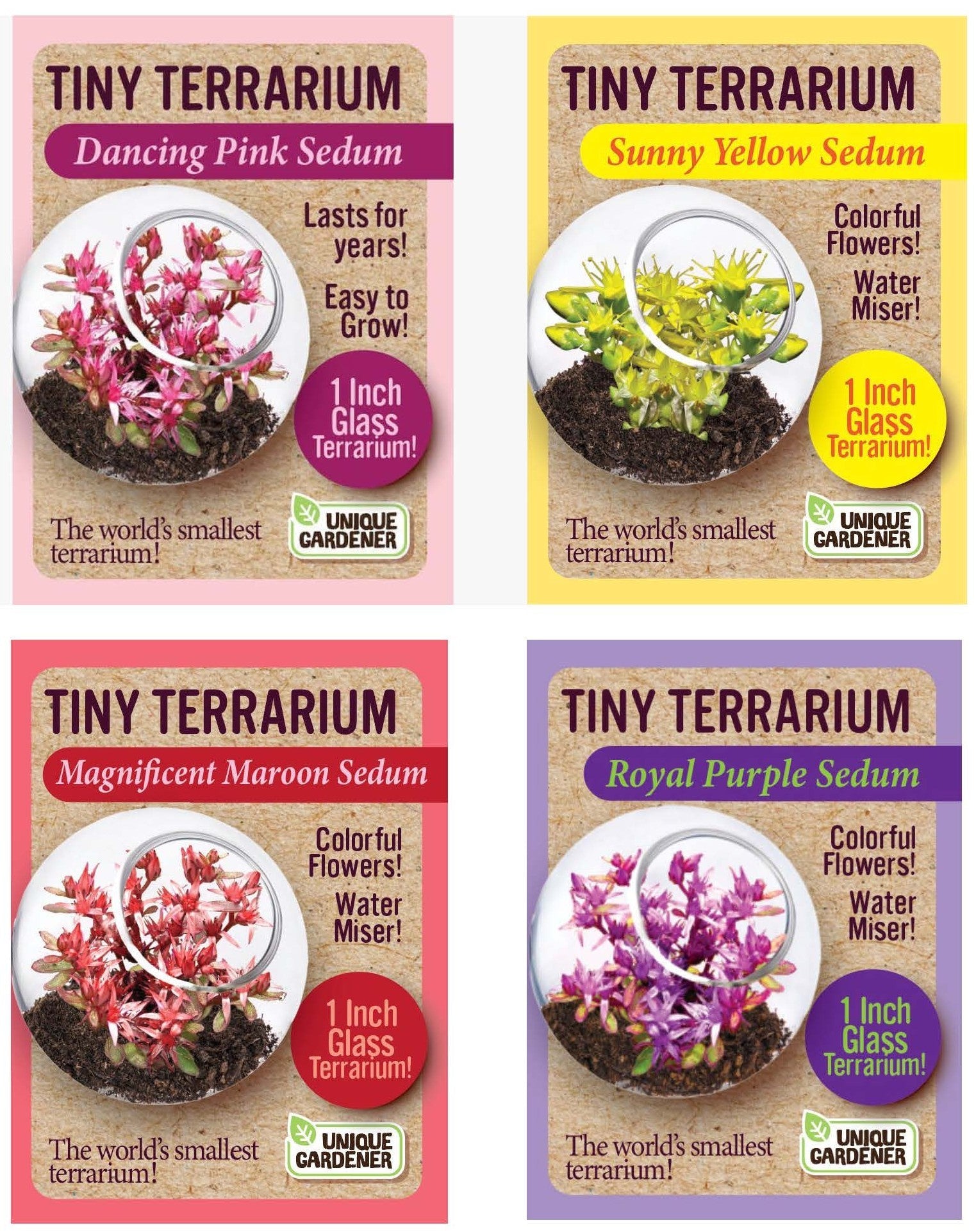 Grow your own tiny, self-contained eco system.  Each high-quality globe is handmade. The succulents will naturally conform to the container and stay small while growing in it. However, they can grow to full size if they are transplanted into progressively larger containers. Sedum has star shaped blooms that attract pollinators such as birds, bees and butterflies. Sedum has fleshy, succulent leaves. Sedum is easy to propagate by simply breaking off a piece and planting it in the soil. Instructions included.  Guaranteed to Grow!