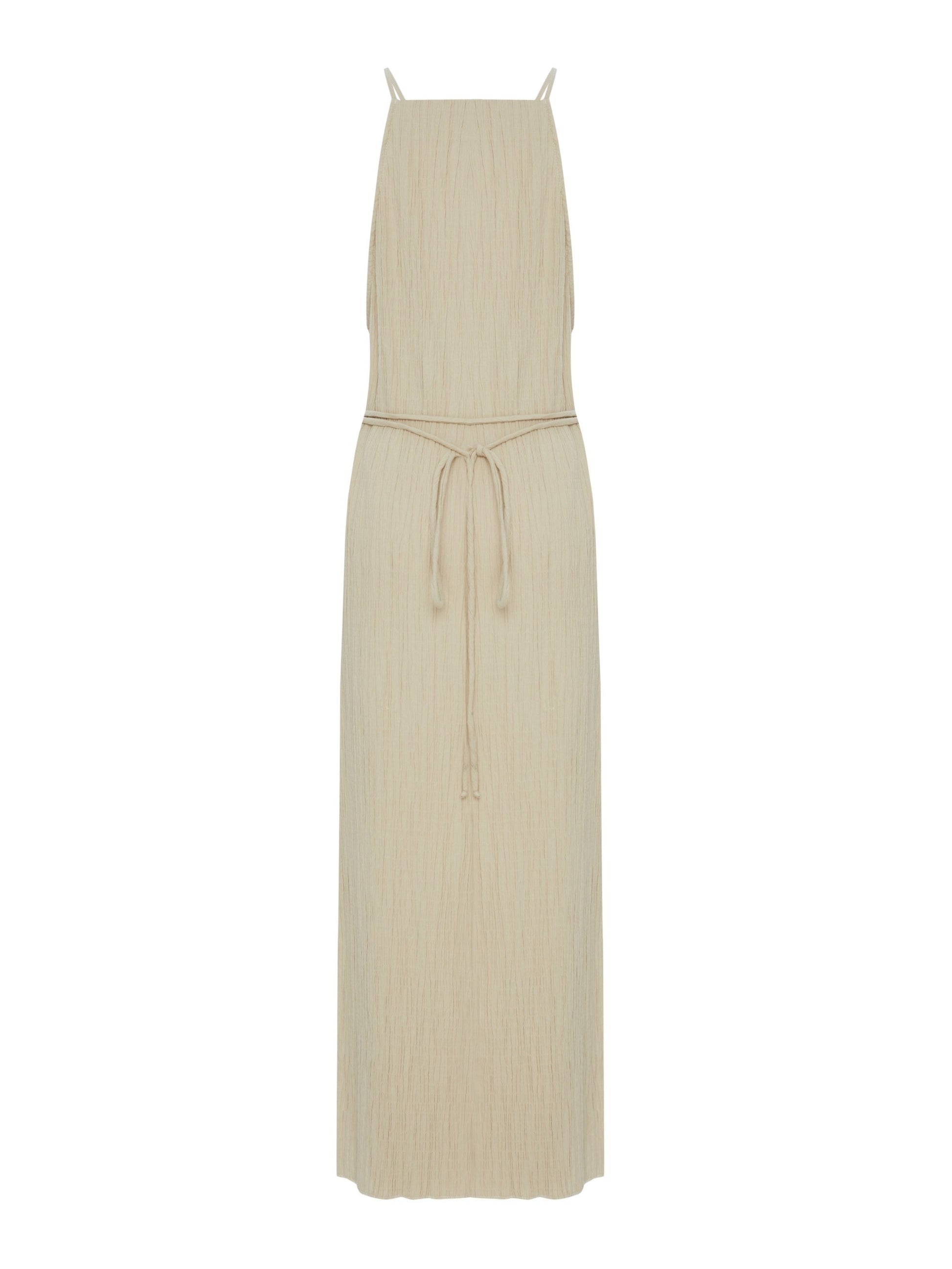 The Siesta Dress Oatmeal is the perfect summer dress that will leave you wanting to dance on a tropical beach barefoot. A seamless blend of comfort and style in an airy summer ensemble, it is meticulously crafted from stretchable 100% Turkish cotton. The dress boasts a square neck, an adjustable waist spaghetti belt, delicate spaghetti straps, and a relaxed fit. Effortlessly slip into this wardrobe essential for an elevated yet relaxed look.