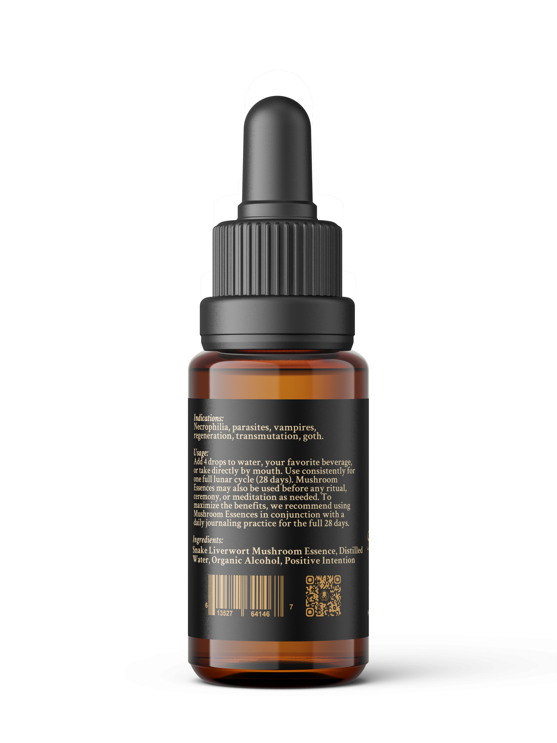 Snake Liverwort Mushroom Essence (Conocephalum salebrosum) is indicated for: necrophilia, parasites, vampires, regeneration, transmutation, and goth.