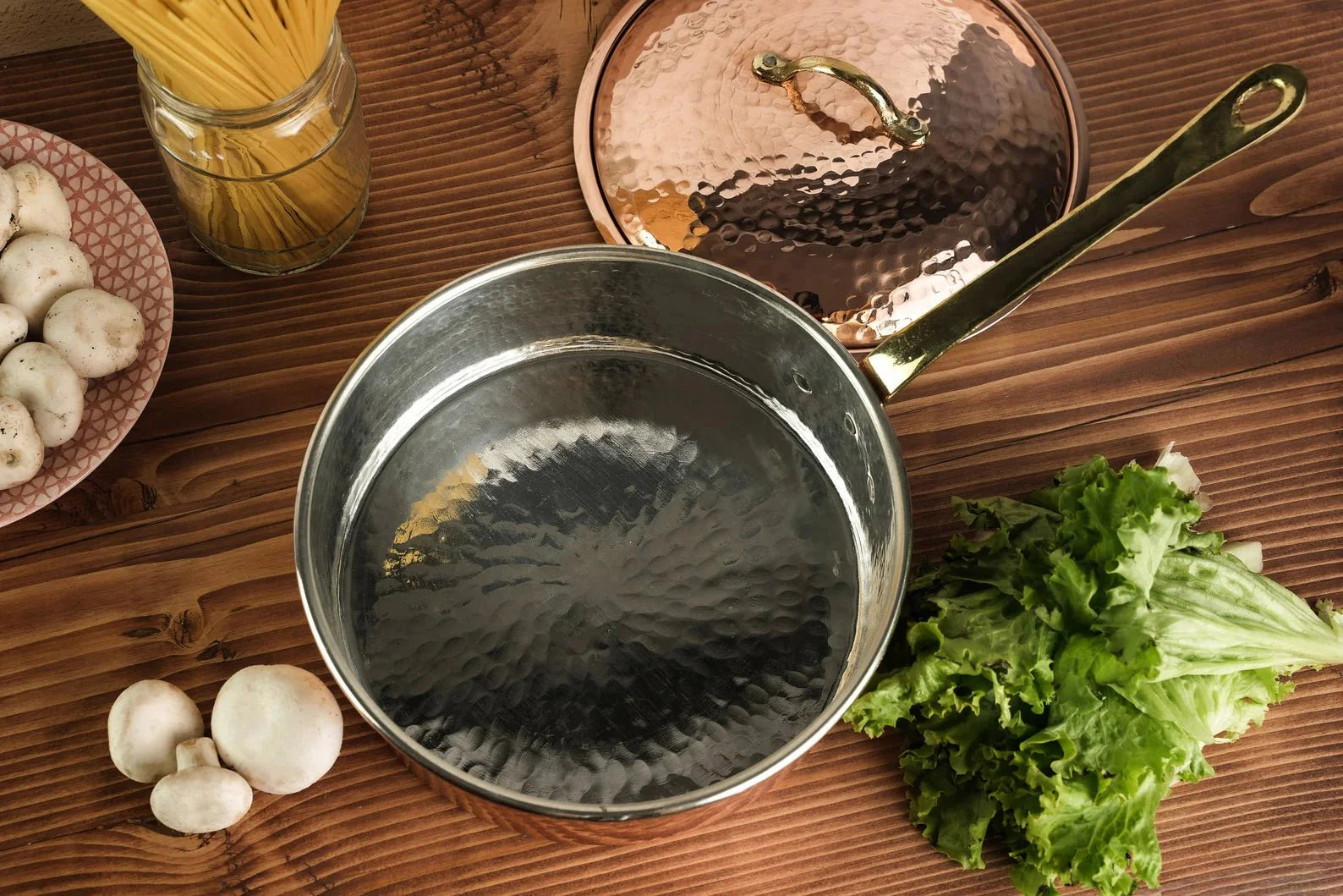 Solid Copper Saucepan with Lid | Handmade Copper Pan Cooking Pot | Handled Turkish Copper Kitchen Utensil Sets