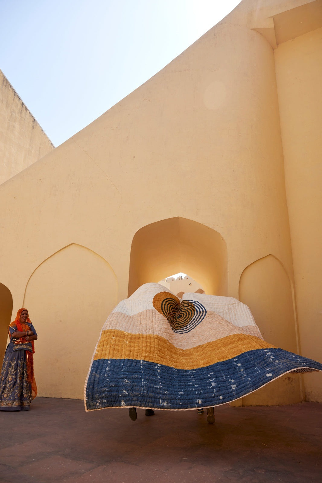 Each quilt is handmade, requiring attention from 4 different artisans, including wood carvers, block printers, quiltmakers, and dye specialists.
