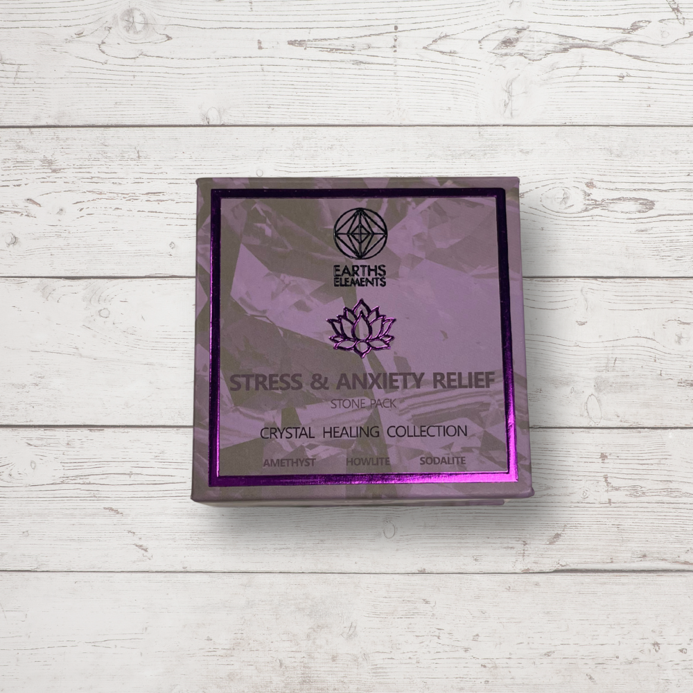Find calm, clarity, and balance with this carefully curated Stress & Anxiety Relief Stone Pack. Each pack contains three powerful tumbled crystals—Amethyst, Howlite, and Sodalite—chosen for their soothing, stress-reducing properties. Packaged in an elegant 2.5″ x 2.5″ x 1″ box, these crystals are perfect for personal use, meditation, or gifting to someone special.
