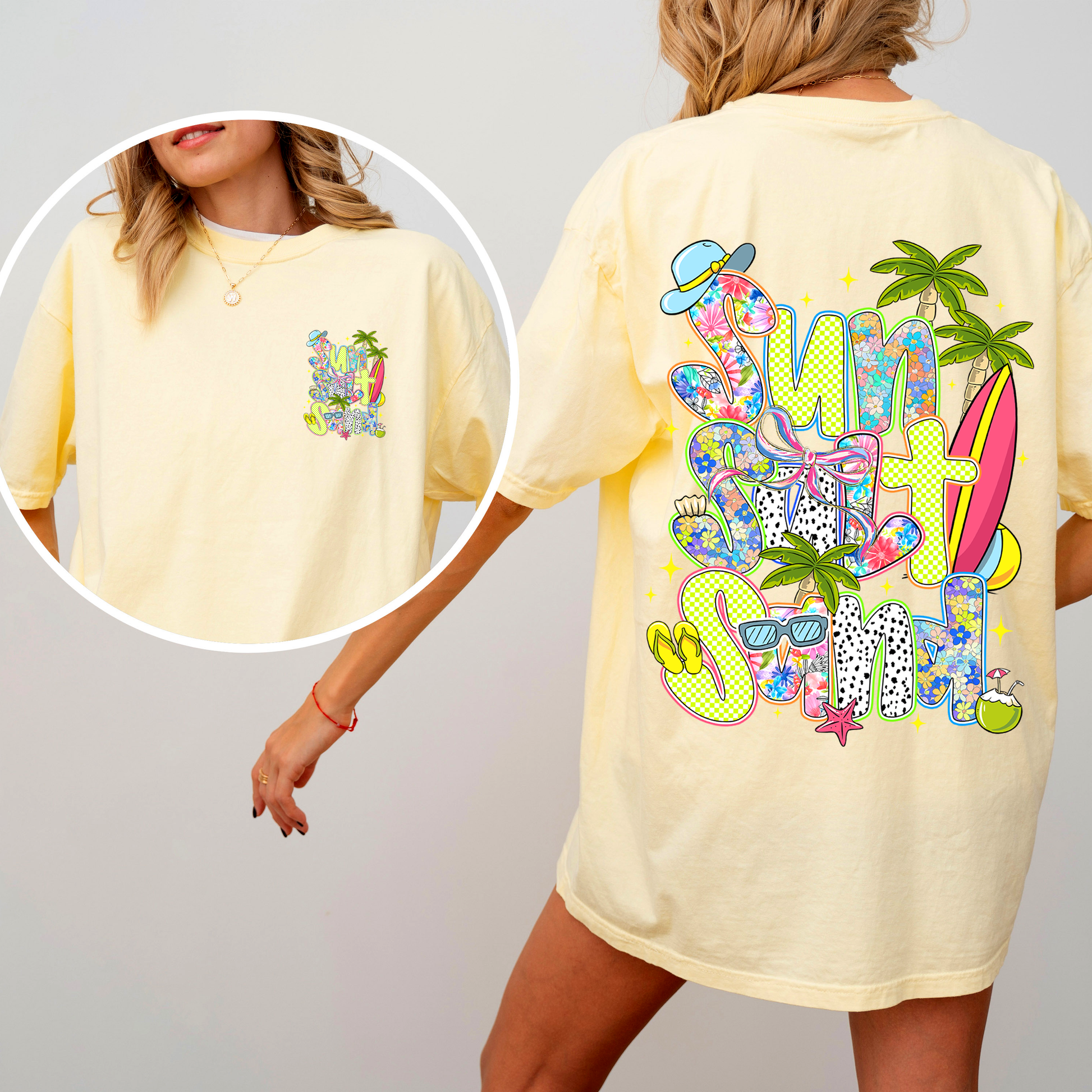 Don’t let this summer pass you by without adding the Sun, Salt, Sand, Summer, Beach, Front and Back, Retro, Comfort Colors T-Shirt to your wardrobe. It's not just a t-shirt; it's a celebration of summer fun and adventure. Order yours today and let your summer spirit shine!