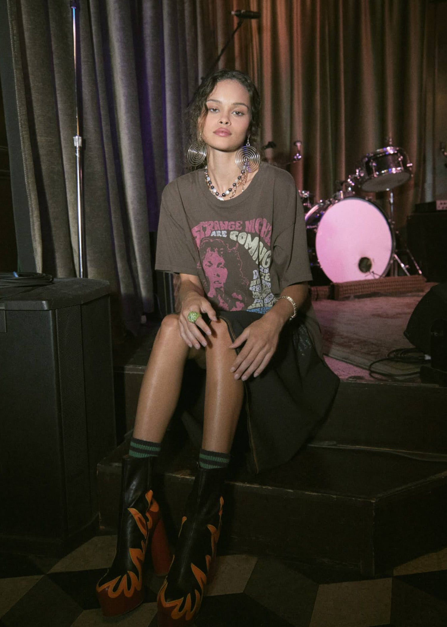 Whether it was their intoxicating sound or the mesmerizing power of poetry and presence, The Doors’ arrival on the rock scene transformed music culture forever. Their string of singles soon became stone classics that still make noise today. Featuring a rendition of the original poster art for their back to back shows at the Shrine Auditorium in Los Angeles in ‘67, The Door’s latest merch tee pays tribute to their knockout set, “Strange Nights Are Coming.”