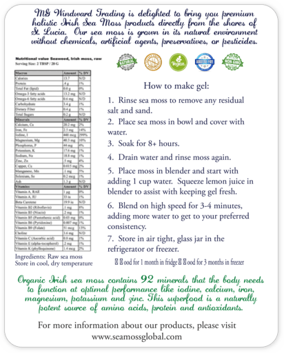 We understand the significance of authenticity, quality, and purity when it comes to sea moss. That's why we're proud to introduce our certified wild harvested raw sea moss, meticulously sourced directly from the pristine waters of Praslin, St. Lucia. Our sea moss isn't just the real deal; it's the embodiment of authenticity. It's not cultivated in artificial pools; it's a product of the sea itself. Our sea moss is sun-dried, as nature intended it to be, not artificially preserved in a wet state. We've taken every measure to ensure that our product is pure and untainted, leaving no room for doubt. The absence of salt crystals, the telltale sign of sea moss grown in pools, is your assurance of authenticity. It is nature's gift, a superfood teeming with 92 essential minerals and vitamins. Embrace the natural goodness of sea moss and experience a revitalized and healthier you. In a market saturated with sea moss products that fall short of expectations, we stand apart. Our sea moss is not just a product; it's a commitment to your well-being. It's the result of dedicated sourcing, rigorous quality control, and a passion for delivering authenticity. Join us on this sea moss journey and experience the real deal, a sea moss that truly makes a difference.