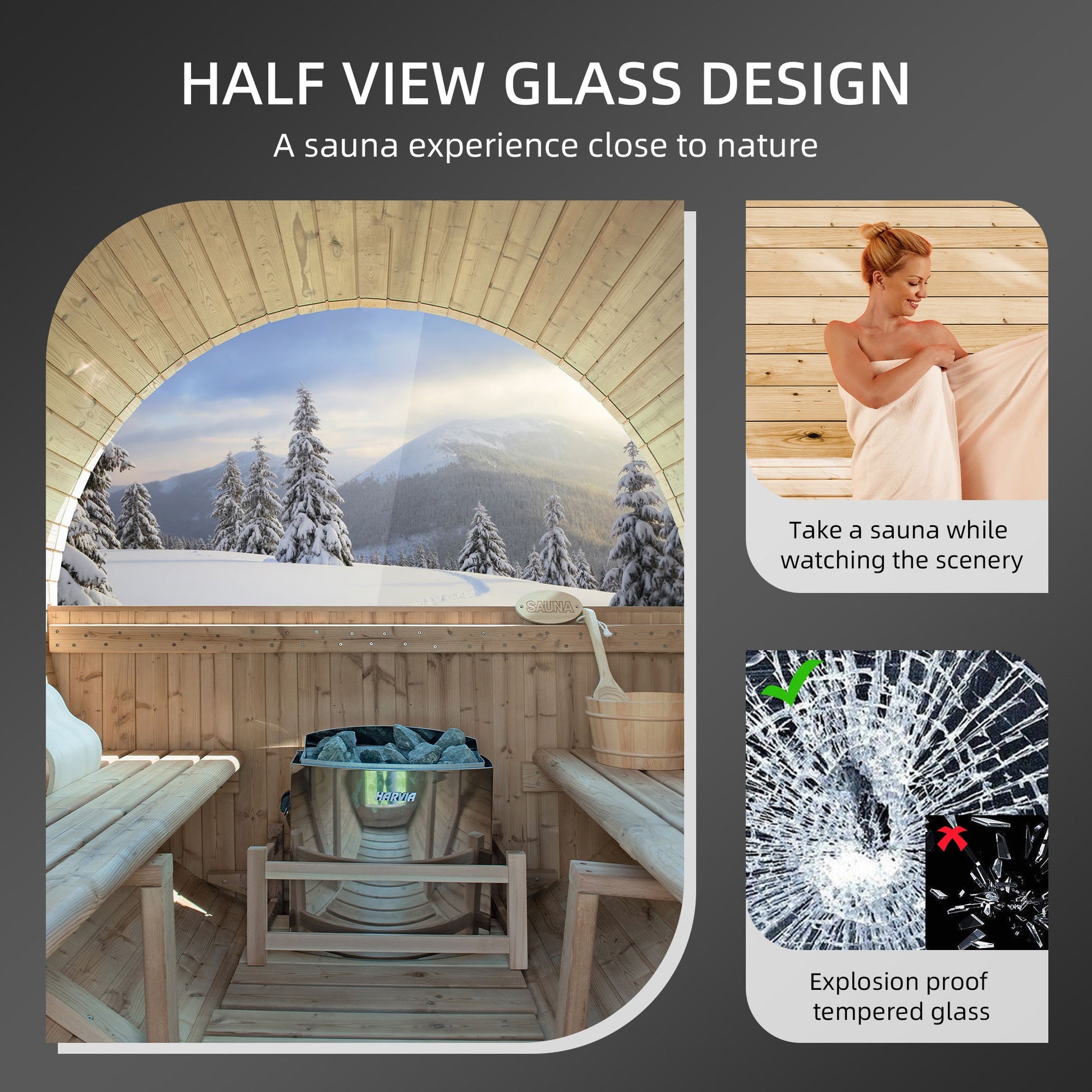 ? [VIEW WINDOW]: Provide a wider field of vision, allowing you to enjoy the beautiful outdoor scenery while enjoying the sauna, making you feel more comfortable. Improve the effect of sauna.