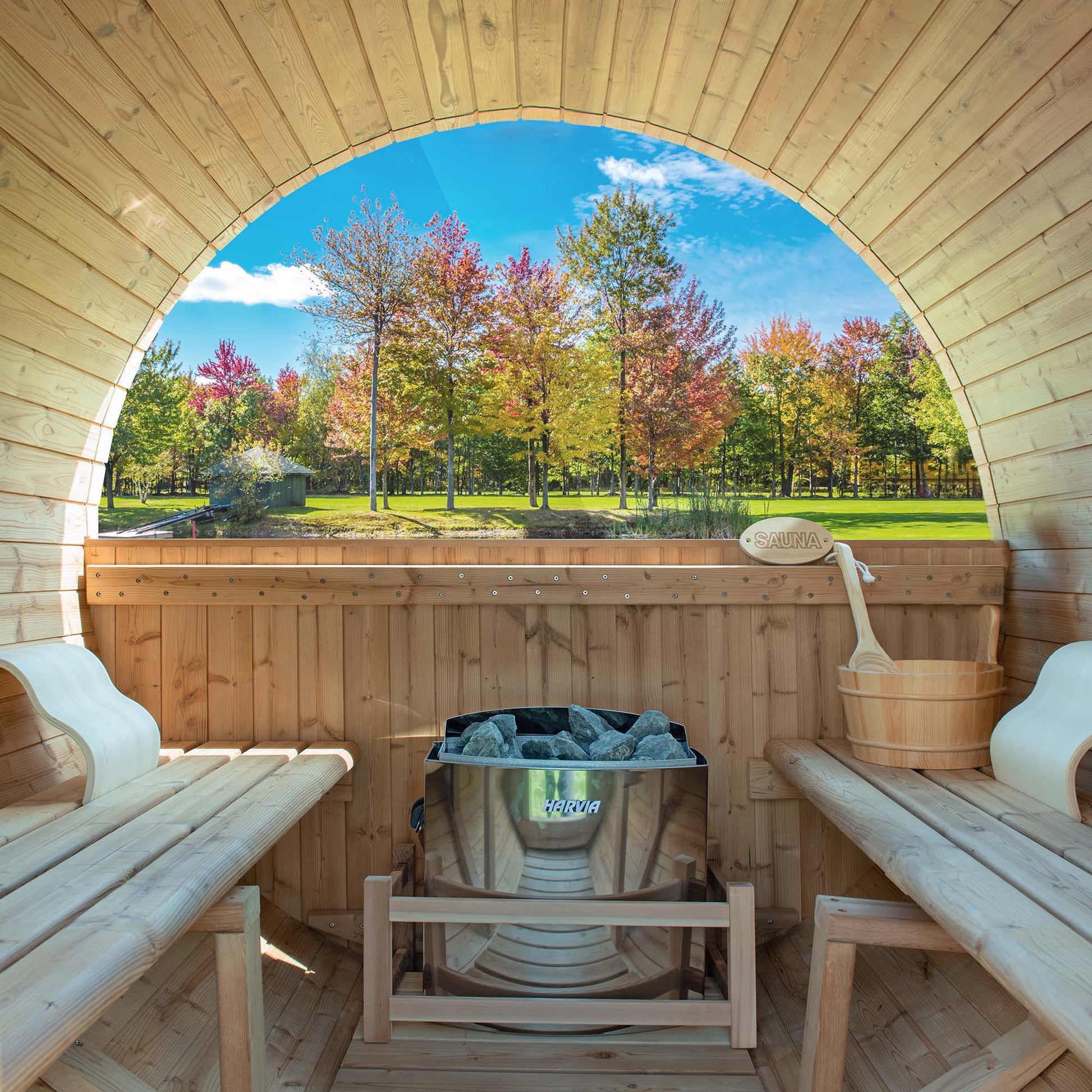 [BARREL FOR BETTER CIRCULATION]: the heat gets circulated back down along the curved walls instead of pooling near the top, this creates a constant flow of evenly distributed heat throughout the sauna.