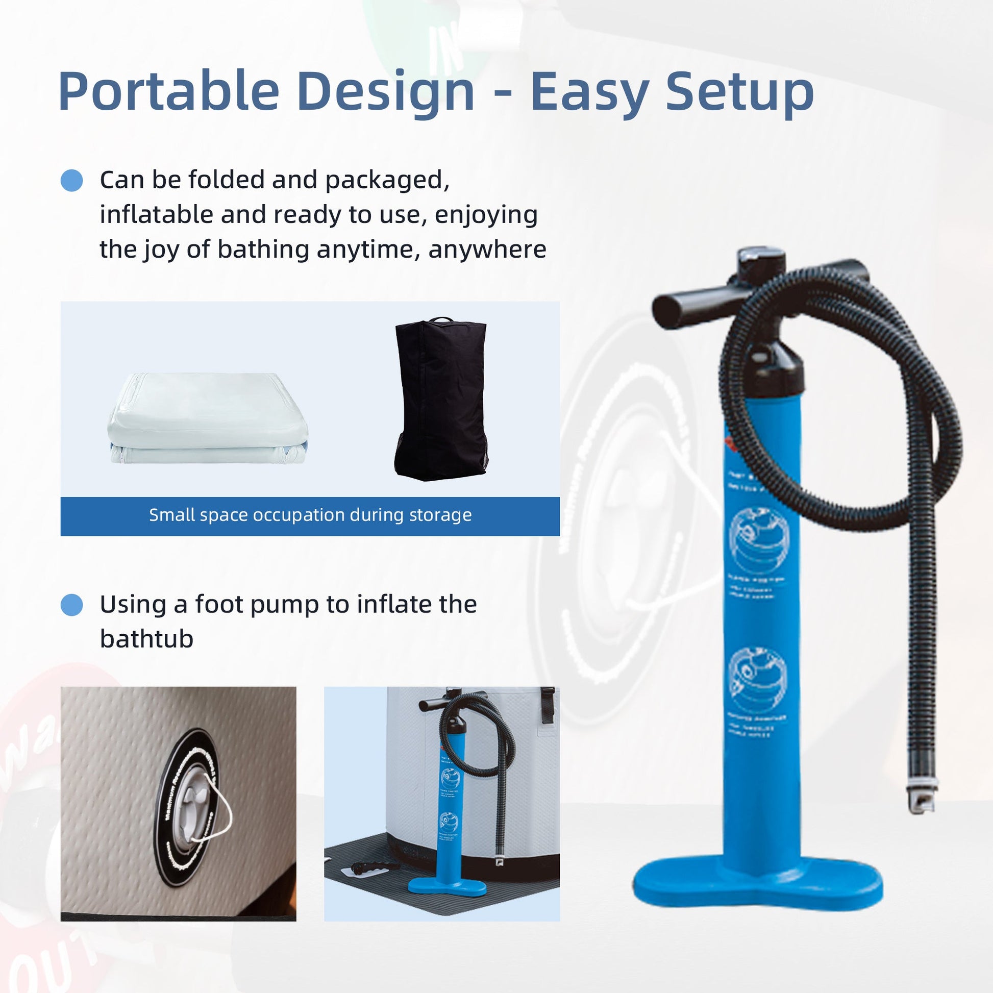 [SIMPLE SETUP]: Set up your plunge tub effortlessly using the included pump. Inflate, fill with water, and start enjoying. The installation process takes less than 15 minutes, and deflating and storing the tub is just as easy.