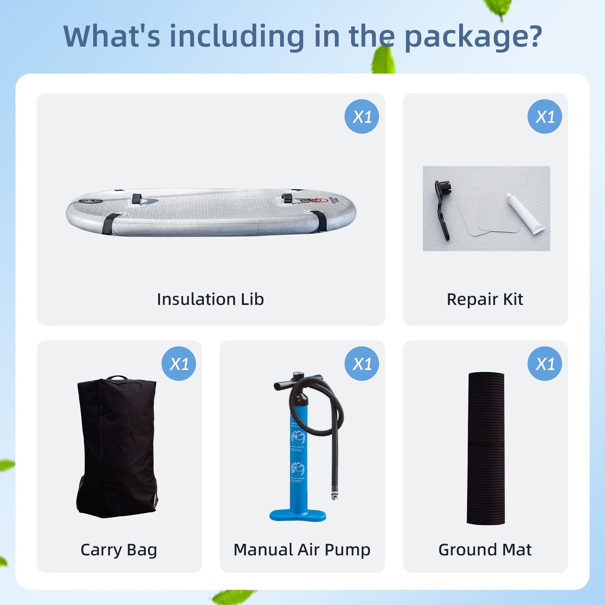 ? [PACKAGE INCLUDED]: Ice Bath Tub x 1, Protective Top Lid x 1 , Storage Bag x 1, Repair Kit x 1, Hand Pump x 1 and Installation manual x 1.  Chiller and connection lines are sold separately.