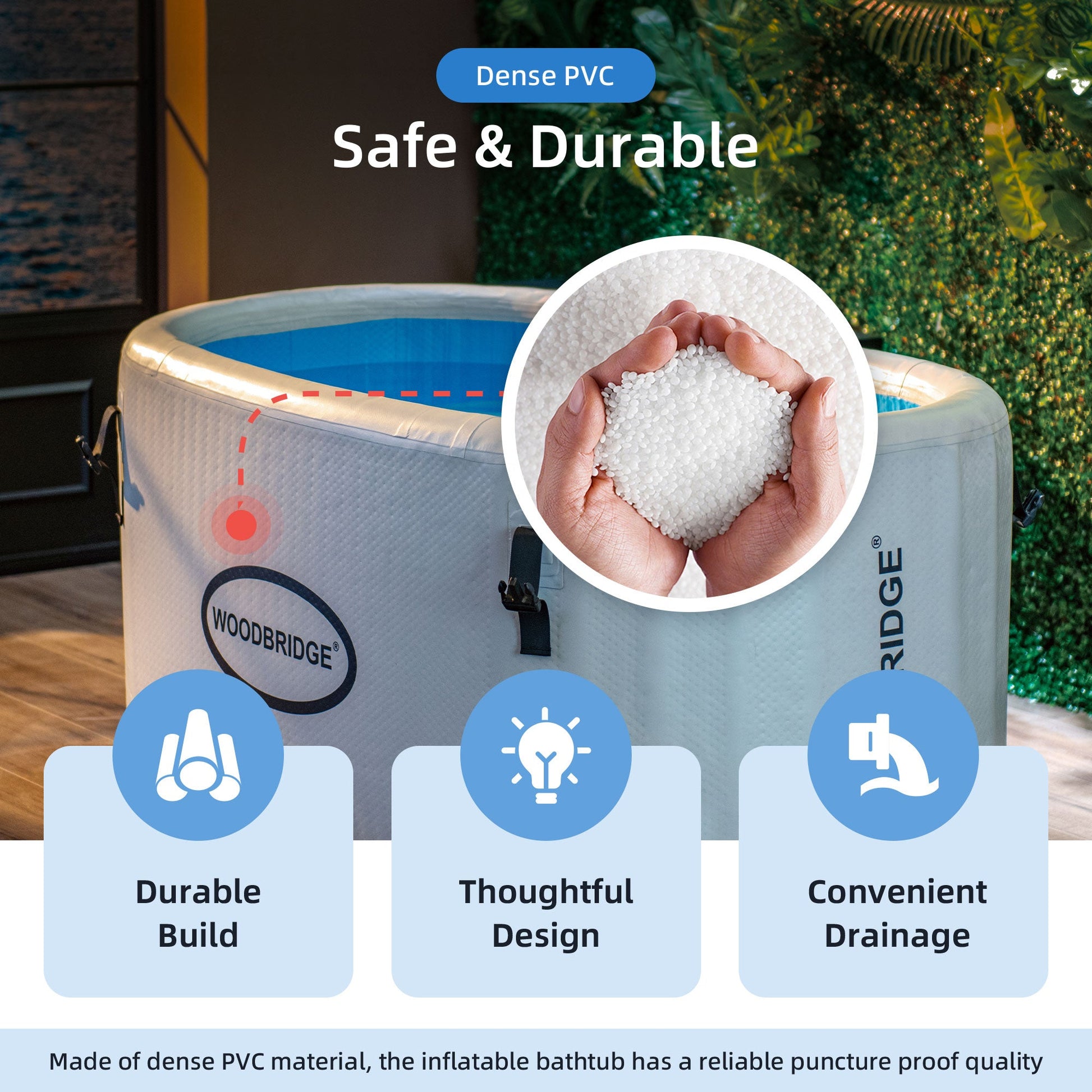 WOODBRIDGE Inflatable Oval Ice Bath Cold Plunge Tub with PVC Insulated Lid, Hand Pump and Repair Kit Included, Anti-Slid Bottom